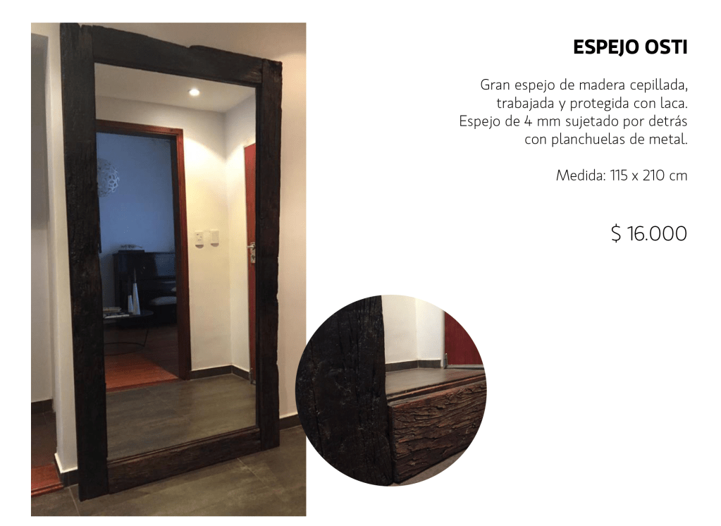 Muebles reciclados Espejo Osti Publicado por solcurtoartista el 19 de julio de 2024 Gran espejo de madera cepillada, trabajada y protegida con laca y todoestá sujetado con planchuelas de metal por detrás. Medida 115 x 210 cm. Consulta por este artículo ← BackSe ha enviado tu mensaje Nombre(required) Advertencia Correo electrónico(required) Advertencia Message Advertencia ¡Aviso! EnviarEnviando formulario Δ Comparte esto: Compartir en X (Se abre en una ventana nueva) X Compartir en Facebook (Se abre en una ventana nueva) Facebook Me gusta Cargando... Relacionado
