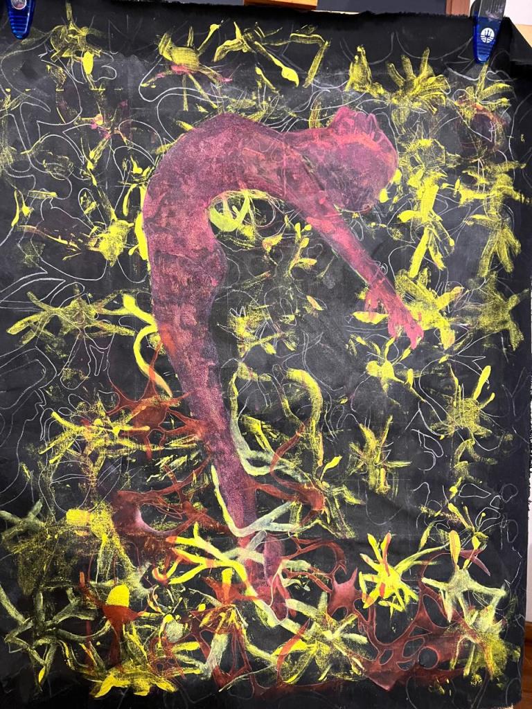 Título: «Serie mujeres únicas» Resistiendo ataduras / 70 x 83 cm / Técnica mixta sobre tela / Año 2024